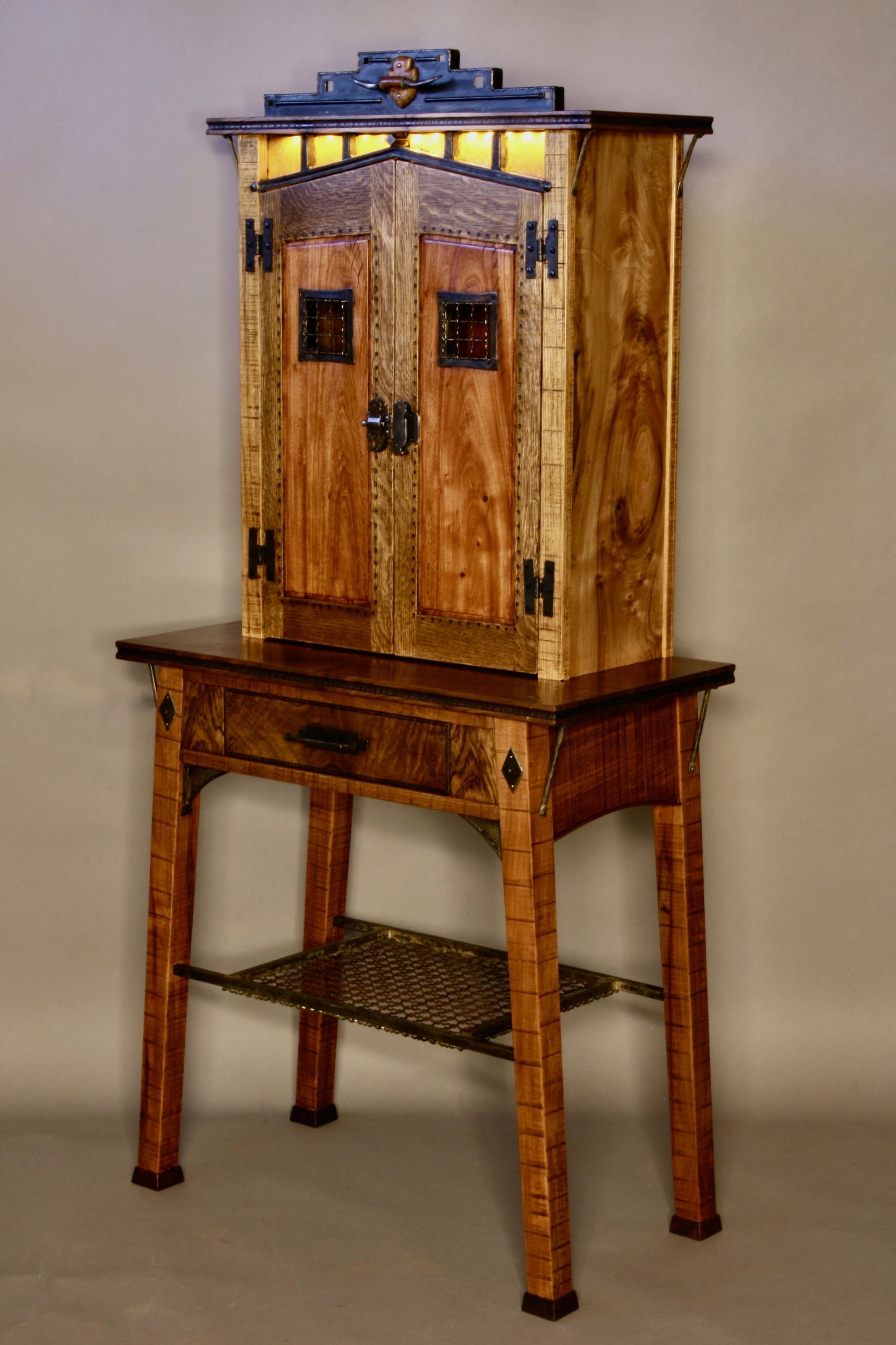 Utilizing a striking array of California hardwoods, re-purposed metals, textured surfaces, traditional joinery, and meticulous carvings, Greenwood creates striking furniture pieces that encompass delightful features such as secret compartments, hidden pop-out key holders, whimsical surprise artistry, dioramas, task lighting, lockable doors, and more.