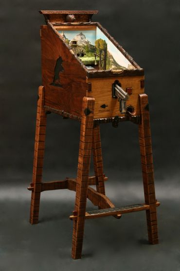 A target game series with a variety of mechanical strategies, intricate carvings and beautifully illustrated detailed paintings by Jesse B. Greenwood. SOLD